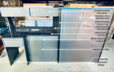 Give your VW T5 or T6 a modern, high-contrast look with this bold and practical kitchen unit setup. Featuring sleek high-gloss grey laminated panels, a durable Black Sparkle Worktop, and vibrant Blue Trim edging, this setup is designed for maximum impact and lasting quality.
