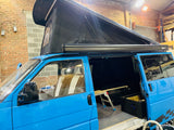 The Volkswagen T4 made a great conversion from its inception, really the first of a new wave of popularity in van to camper conversions with a large industry based solely around making VW T4 campers, continuing were earlier products left off, we have developed an elevating roof to match the rugged reliability of VW T4 making it into a fantastic camper van.